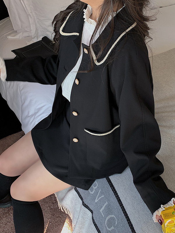 黑色洋氣小香風(fēng)套裝女春季